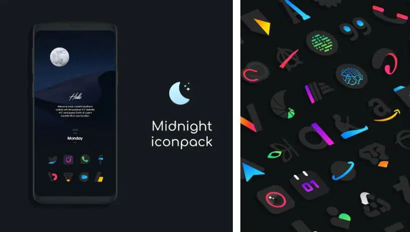 Zwart is specially designed for lovers of dark themes. This icon pack supports around 5 thousand icon styles with cloud wallpaper and highly flexible calendar and multi-launcher support.