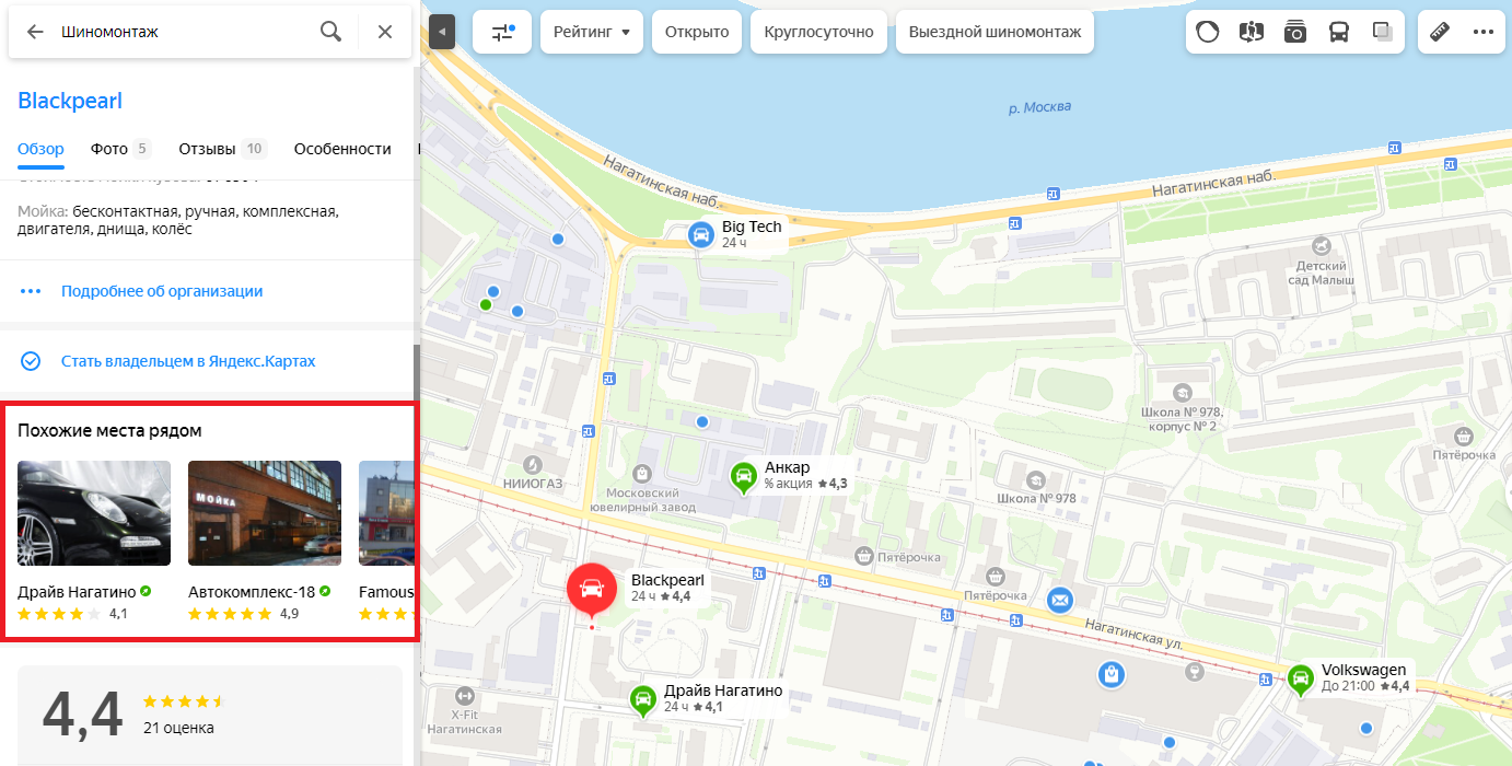 Перед рекламным размещением убедитесь, что у вас в карточке достаточно фотографий хорошего качества (их количество зависит от рода деятельности компании: ресторанам нужно больше, чем офису продаж b2b-продуктов), а рейтинг организации не ниже 4.0. Рейтинг ниже четырех баллов может негативно сказаться на эффективности продвижения: низкие баллы — а рейтинг пользователь видит в первую очередь — не вызывают доверия пользователей.