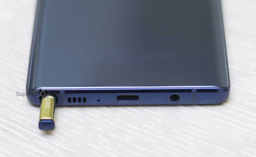 По граням корпуса сохранилось то же расположение элементов, что и в S9+: сверху – лоток, справа – кнопка питания, слева – кнопка Bixby и качелька громкости, снизу – разъём для наушников, порт USB Type-C и… вот оно единственное отличие. Специальное отделение для стилуса S Pen. Об этой волшебной ручке мы поговорим чуть ниже.