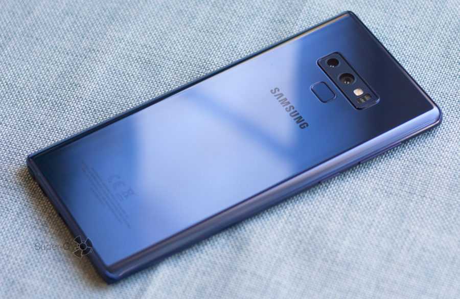 Мне достался аппарат с синим цветом корпуса. Выглядит Galaxy Note 9 строго и интеллигентно, как устройство класса «бизнес», каким оно, собственно, и задумывалось. Сзади можно найти немало отличий от того же Galaxy S9+. Тут всё очень симметрично: прямоугольное окошко камеры, под ним почти прямоугольный сканер отпечатков, ниже логотип, и всё это выровнено по центру – выглядит аккуратно, красиво, приятно смотреть.