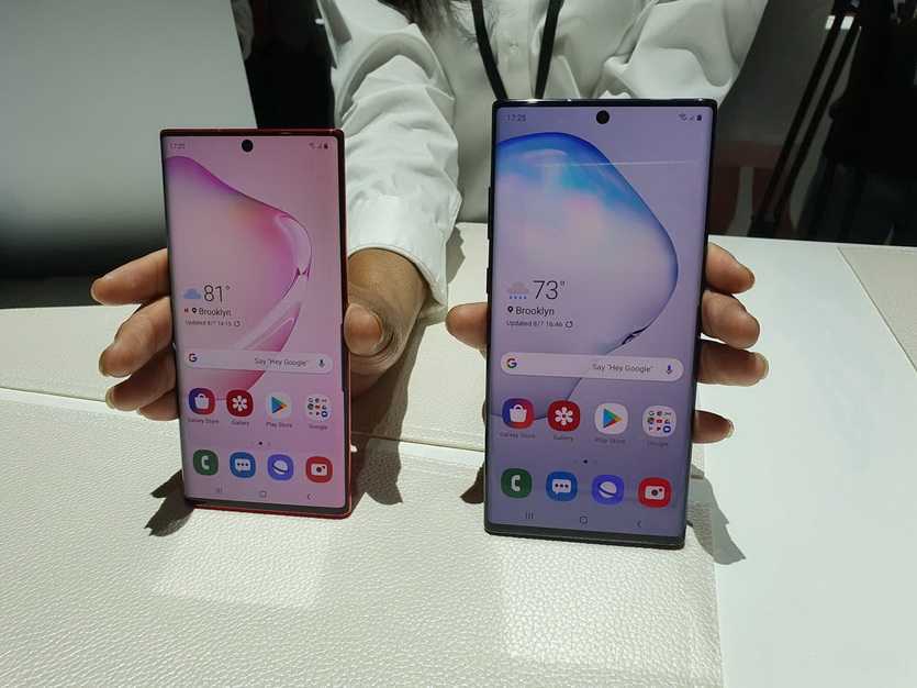 Отличия экранов отразились на размерах Note10: младший повторяет габариты «компактного» Galaxy S10, старший немногим больше. И уж точно меньше прошлогоднего Note 9 с меньшим дисплеем.
