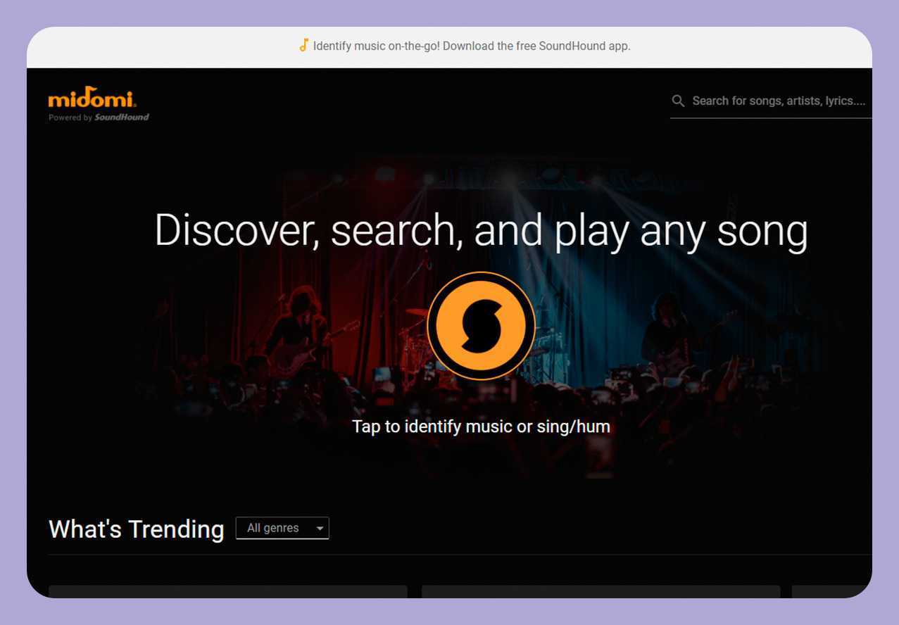 Midomi подойдёт пользователям, которым необходимо быстро узнать, что за музыка играет через микрофон. Сервис находит песню по звуку за 10-15 секунд и сразу выдаёт не только название, но и текст.