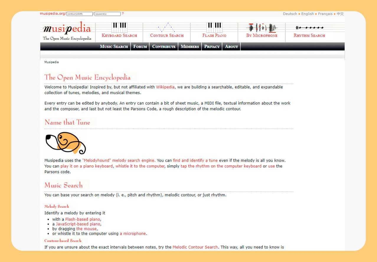 Сервис не подойдёт для быстрого использования, так как имеет трудный для понимания интерфейс. Сайт использует поисковую систему мелодий под названием «Мелодиана», которая может определять музыку через клавиатуру для фортепиано, путем перетаскивания мыши, нажатием на сами клавиши, через микрофон, мелодичный контур и ритм (постукиванием).