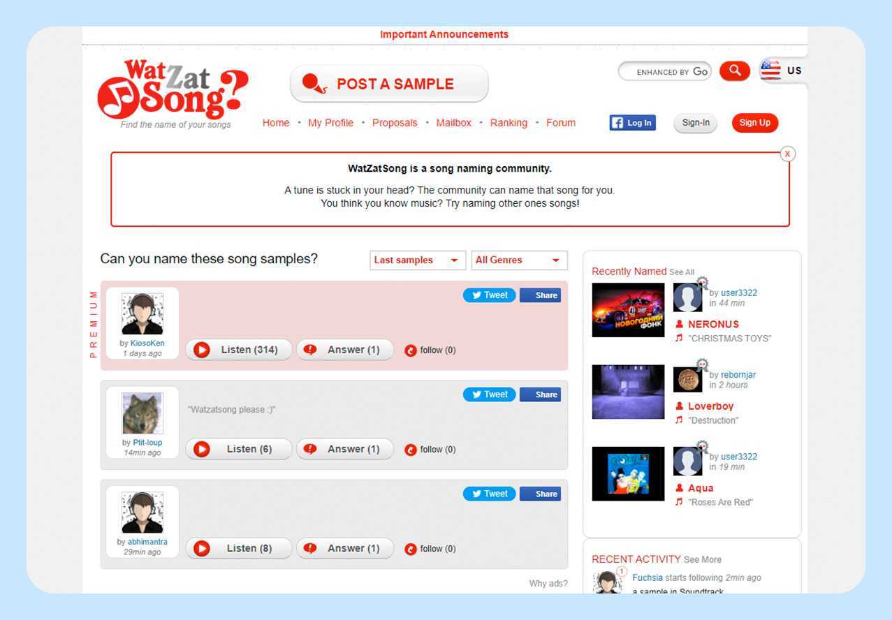 На сайте есть форум, репутация, мессенджер и настройка профиля. Регистрация и использование WatZatSong бесплатные.