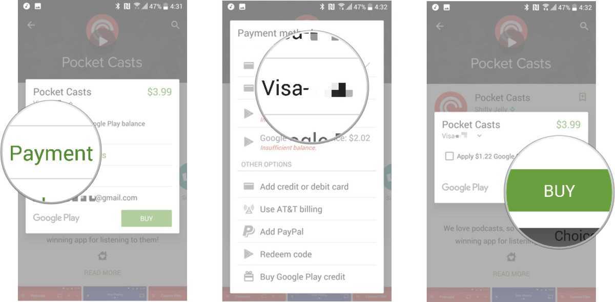 - Нажмите на один из доступных способов оплаты. Если их нет, система предложит вам добавить кредитную карту, счет PayPal и так далее;