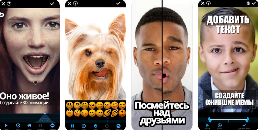 Сам процесс создания оживленного фото практически не отличается от описанного выше. Единственная разница в том, что все делается на основе других снимков и гив-образцов. Вы не можете загрузить собственный пример из видео. Зато здесь можно создавать мемы — то есть накладывать на оживленную фотографию надпись. Можно оживлять статуи, животных и любых других персонажей и делать забавные подписи. Ну и самая крутая функция — можно создавать анимацию вручную: