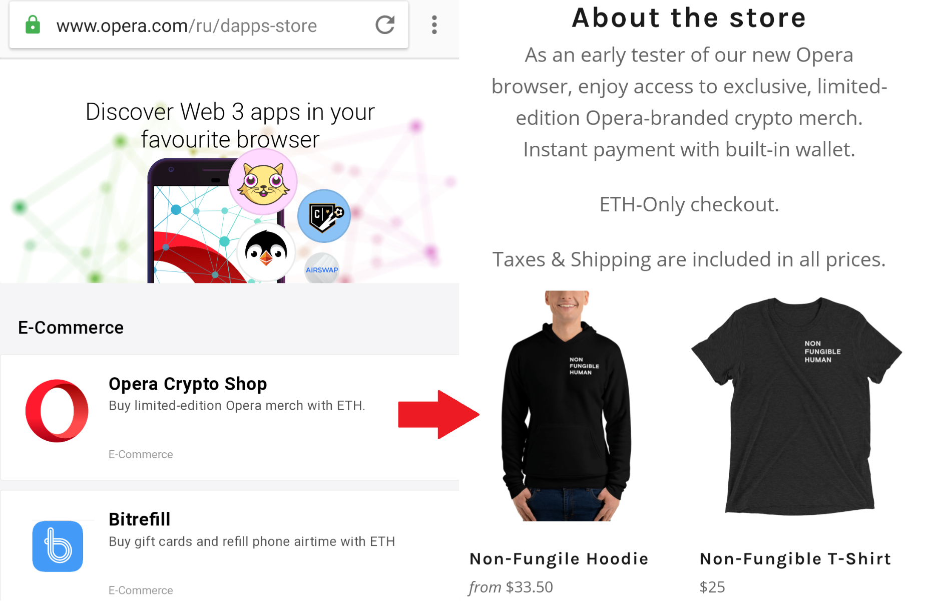 И вот Opera это сделали. В Опере появились Opera Crypto Shop
