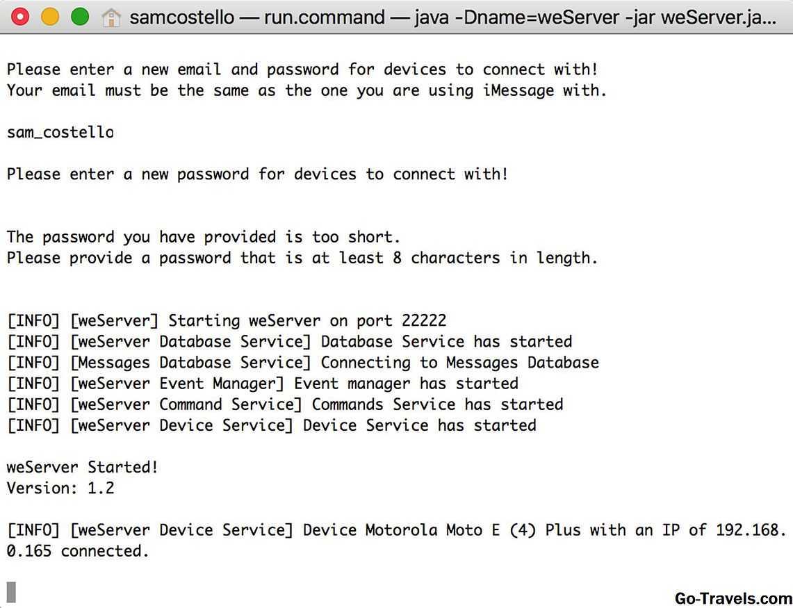 - Для использования weMessage вам необходимо установить Java на вашем Mac. Убедитесь, что у вас есть это, перейдя на Приложения > коммунальные услуги, а затем запуск Терминал приложение, предварительно установленное на вашем Mac. Тип Джава, затем нажмите вернуть.