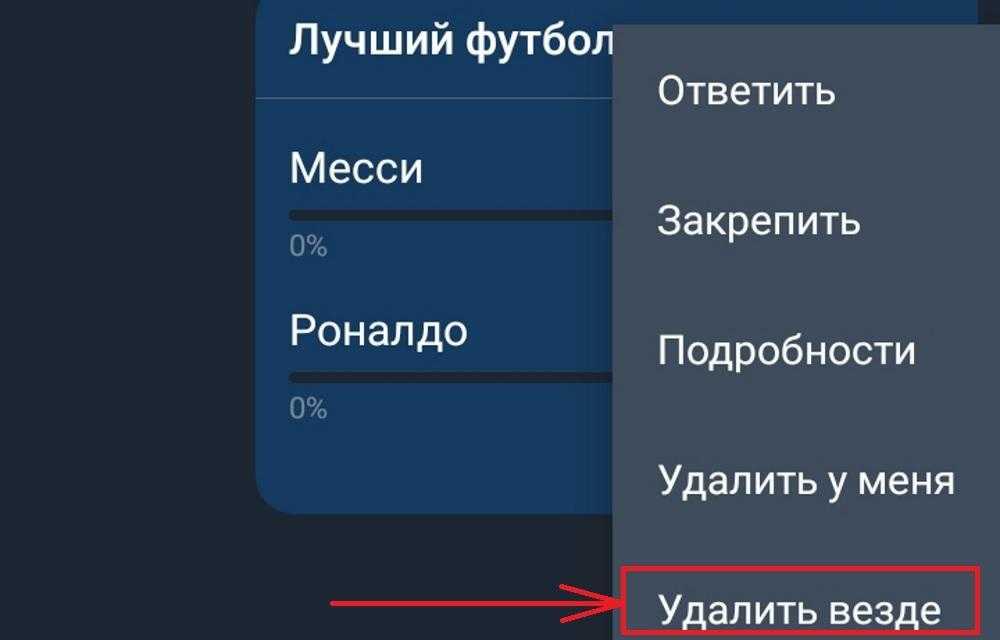 - После этого будет два варианта: “Удалить у меня” и ”Удалить везде” – выбираете нужный. Чтобы удалить для всех участников выбираем второе;
