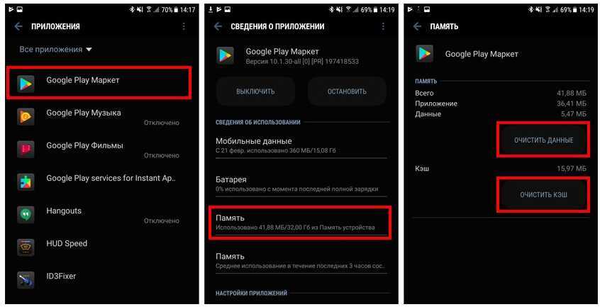 Play Market при работе сохраняет на устройстве кэш — это временные данные, необходимые для ускорения запуска магазина приложений. Но иногда эти файлы вызывают конфликт с новыми временными данными. Устраняется ручной очисткой кэша и данных Google Play. Для этого потребуется: