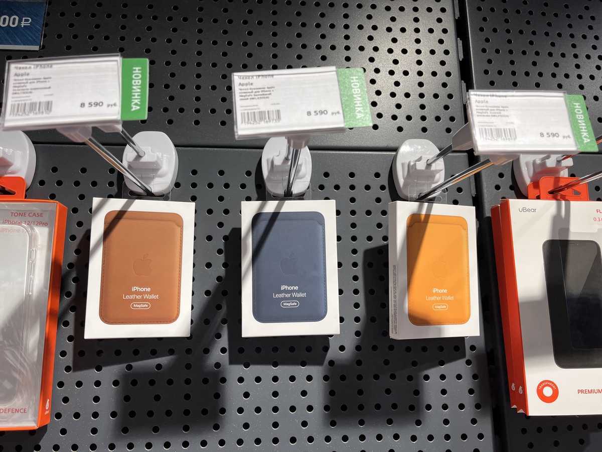 Ещё можно встретить некоторые аксессуары с новыми ценниками. Например, кошелёк MagSafe Leather Wallet за 8590 руб.