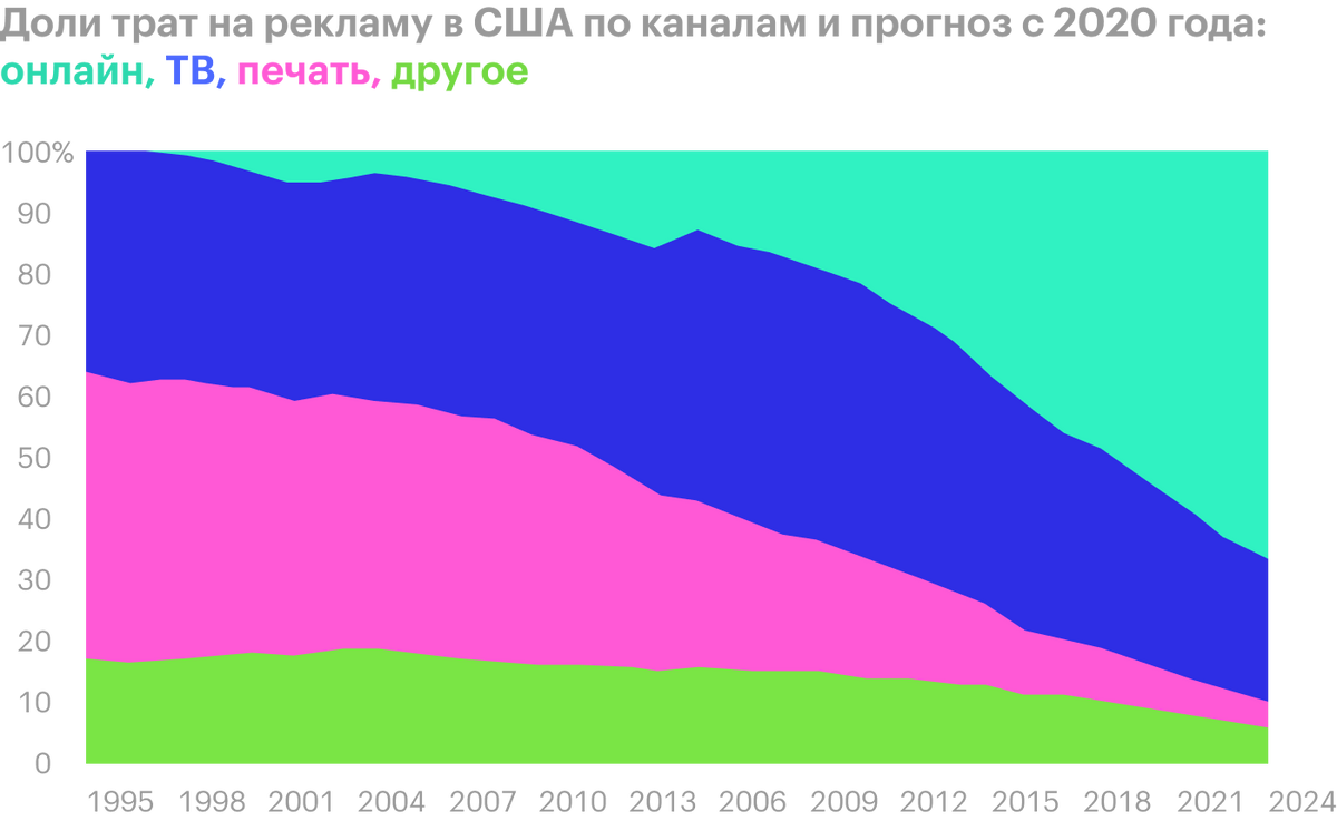 Это ясно уже из описания бизнеса: Google, по сути, рекламная компания. У нас уже был ряд идей по рекламному бизнесу: ViacomCBS, J2 Global, New York Times — в них мы рассказывали о том, как в этом году компании порезали расходы на рекламу из-за пандемии. Онлайн-рекламе повезло чуть больше: там будет не сильное сокращение по сравнению с прошлым годом, а незначительный рост — во много раз меньше ожиданий эпохи до пандемии.