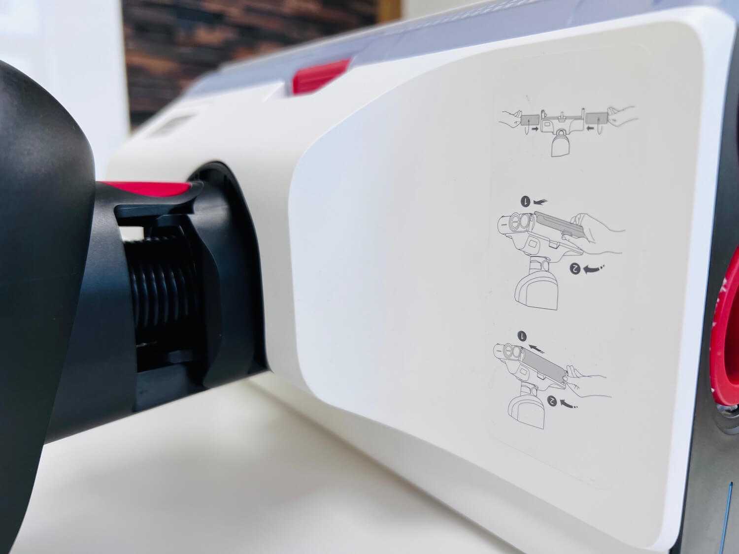 Корпус щетки может поворачиваться на 180 градусов для того, чтобы она была более маневренной, а вы могли добраться до самых труднодоступных мест где-нибудь под столом, под кроватью или под тумбочкой.