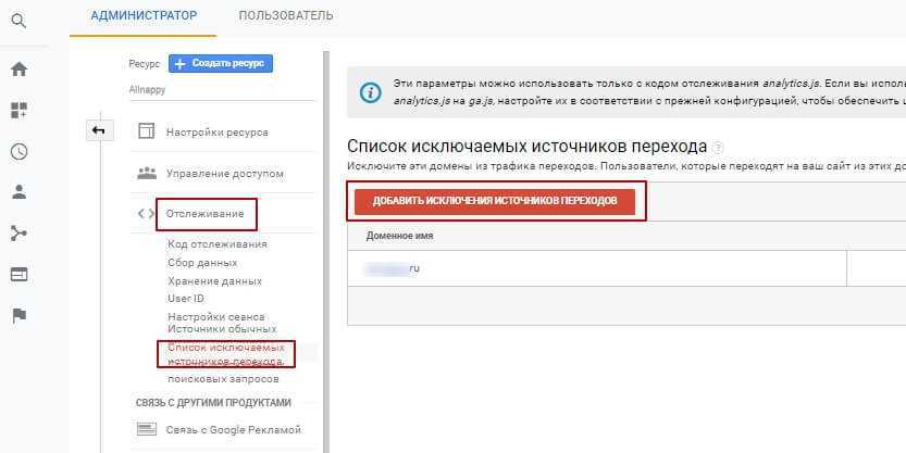 Чтобы такого не происходило, рекомендуется исключить URL вашего сайта из источников перехода.
