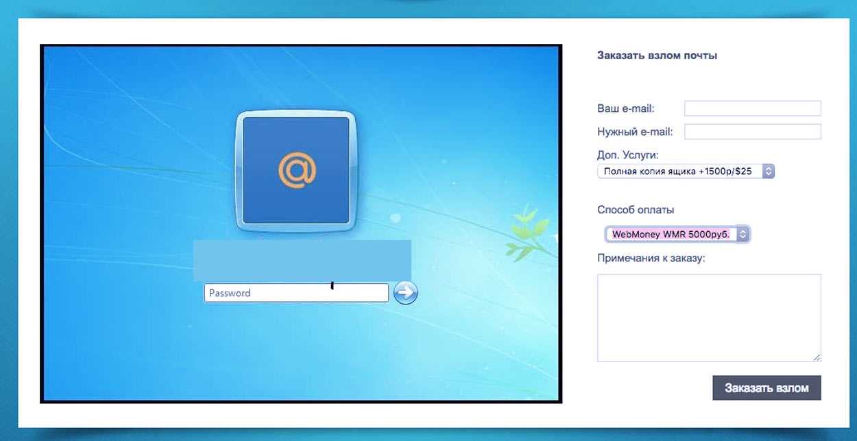 Если жертва попадается, то отправляют заказчику скрин ящика и просят оплатить (средняя цена около $100) свои услуги. После поступления денег высылают пароль от ящика или архив со всеми письмами.