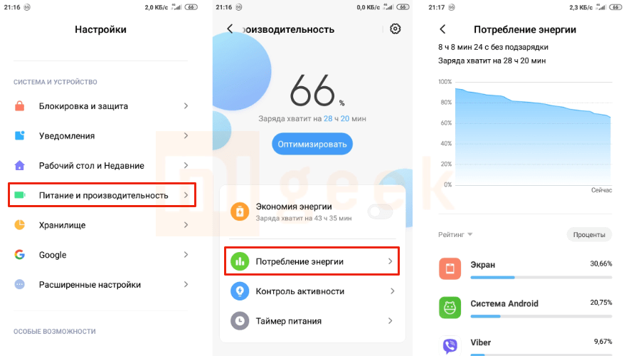 Для контроля за расходом энергии приложениями был создан раздел со статистикой расхода аккумулятора. Он находится в разделе «Питание и производительность» — «Потребление энергии».