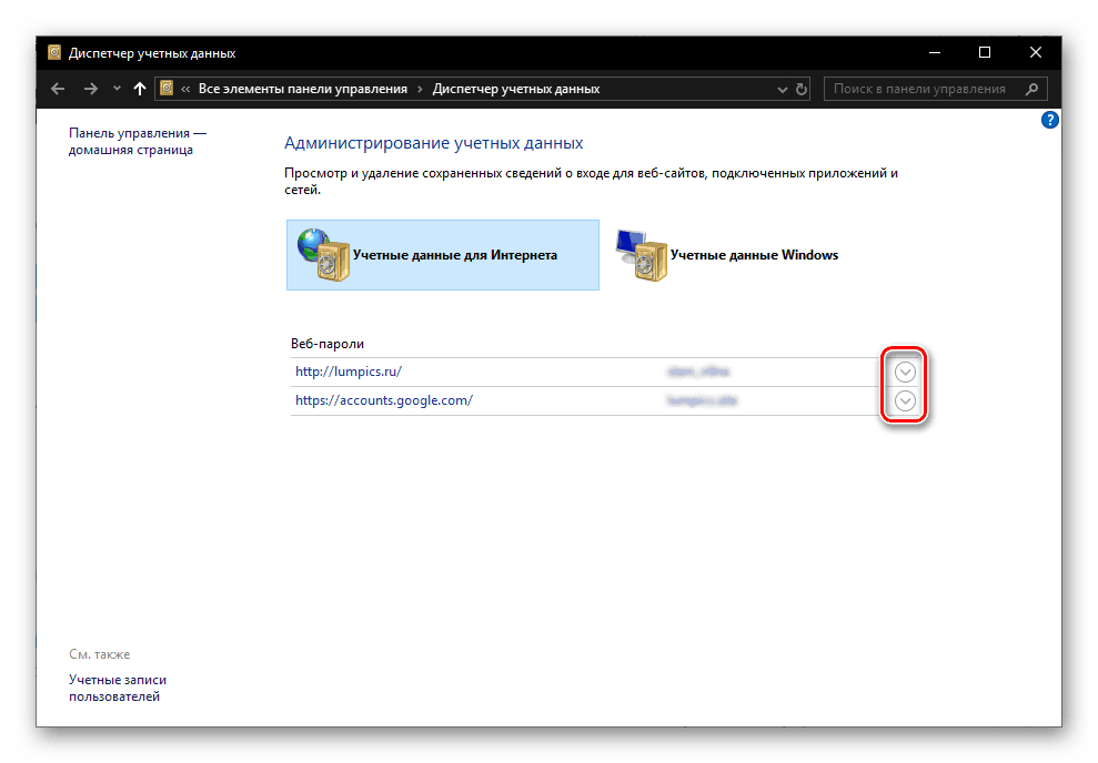 Выделяется на данном фоне только стандартный для всех версий Windows (за исключением последней на сегодняшний день «десятки») Internet Explorer – сохраняемые в нем пароли находятся не в самой программе, а в отдельном разделе операционной системы. О том, как их посмотреть, мы тоже писали ранее.