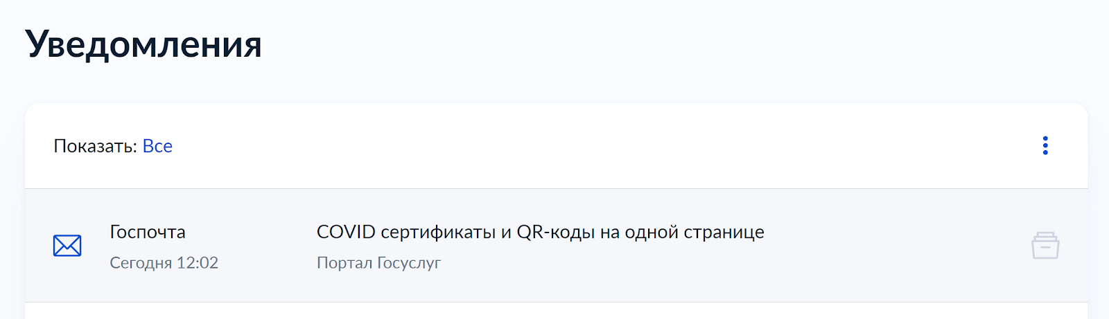 После второй прививки вы получите уведомление от Госуслуг и в личном кабинете появится сертификат вакцинированного.