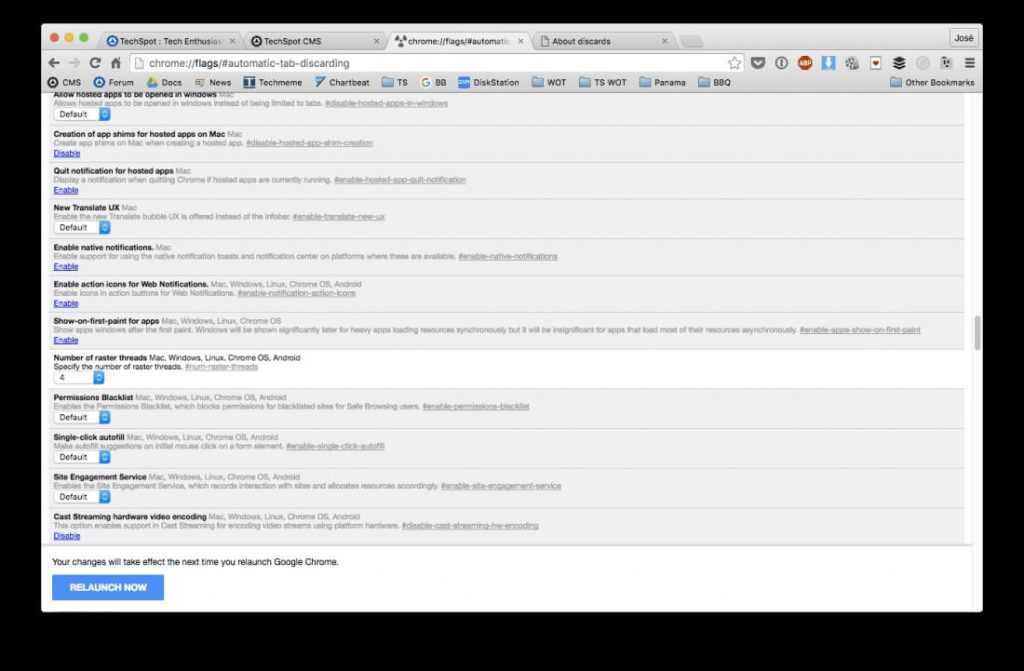 Существует более ста различных экспериментальных функций, и Google, в рамках тестирования, постоянно добавляет и удаляет новые функции. Выберите из них нужные вам и нажмите кнопку перезапуска в нижней части экрана, чтобы применить настройки.