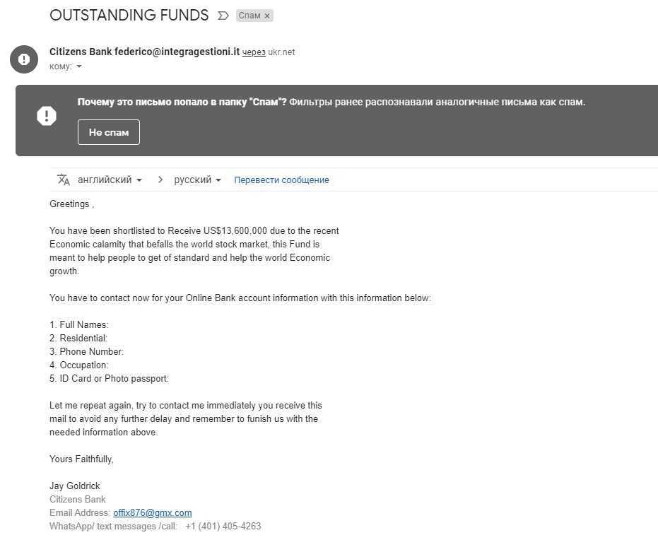 Значительная часть фишинговых кампаний подготовлена иностранными преступниками, которые не имеют представления о нашем языке. Они используют онлайн-сервисы для перевода содержимого электронных писем на русский или украинский языки, что часто оказывается довольно забавным. Такие сообщения не лишены грамматических ошибок, в них отсутствуют знаки препинания и куча неправильно написанных слов. Если вы заметили что-то подобное, можете без сомнений удалить сообщение.