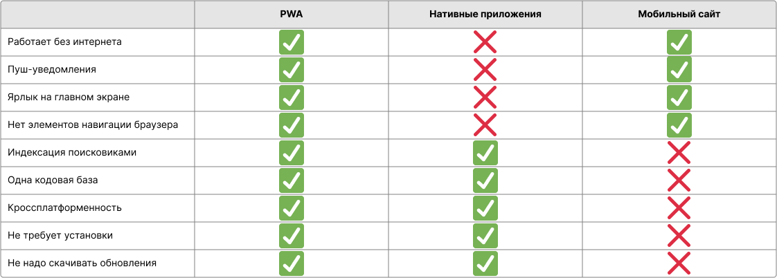 - Во-вторых, Google даёт пользователю понять, что интерфейсно PWA — это не сайты, а самые настоящие приложения, которые ничем не отличаются от традиционных приложений;