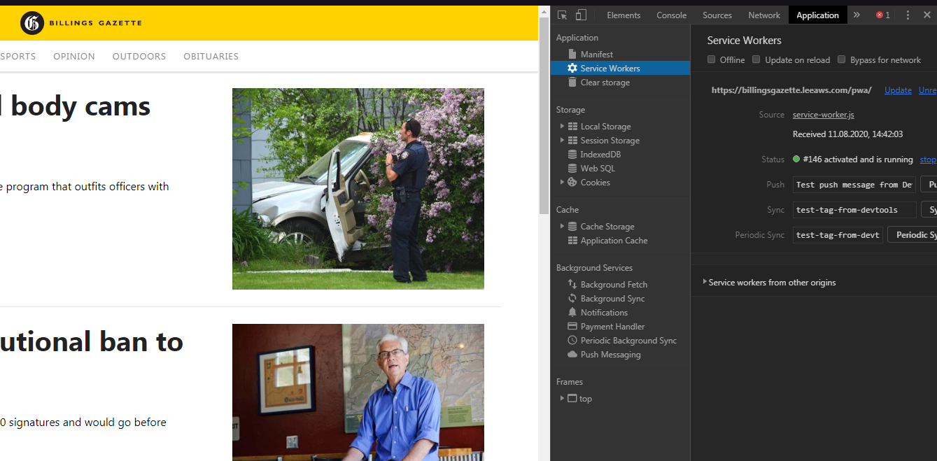 - Перейдите на вкладку Application и Service Workers». Вот пример: