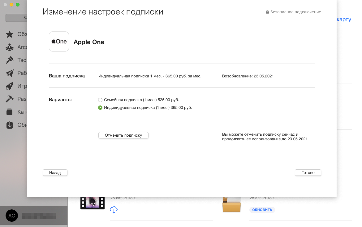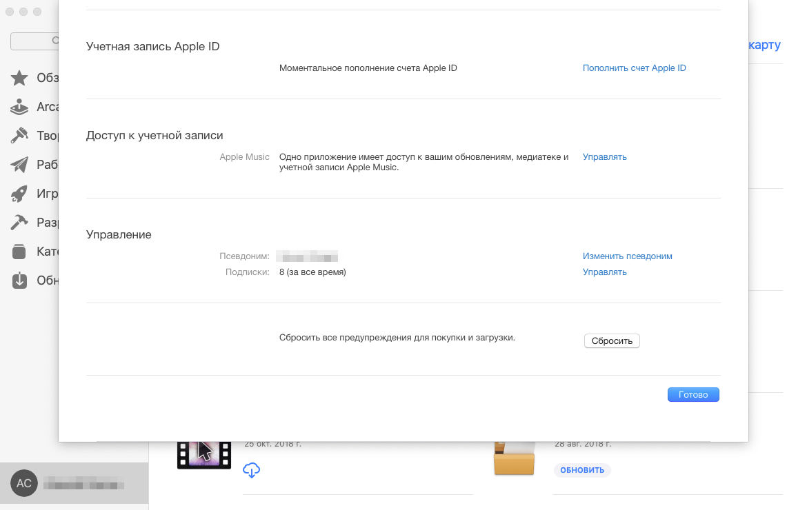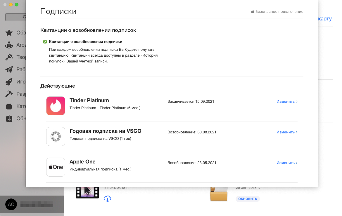 Мак-ос. Зайдите в магазин приложений «Эпстор», затем нажмите на свое фото в левом нижнем углу. В открывшемся окне кликните «См. информацию». В новом окне пролистните до пункта «Управление» и выберите «Управлять». В списке подписок найдите нужную и кликните «Изменить», а затем — «Отменить подписку».