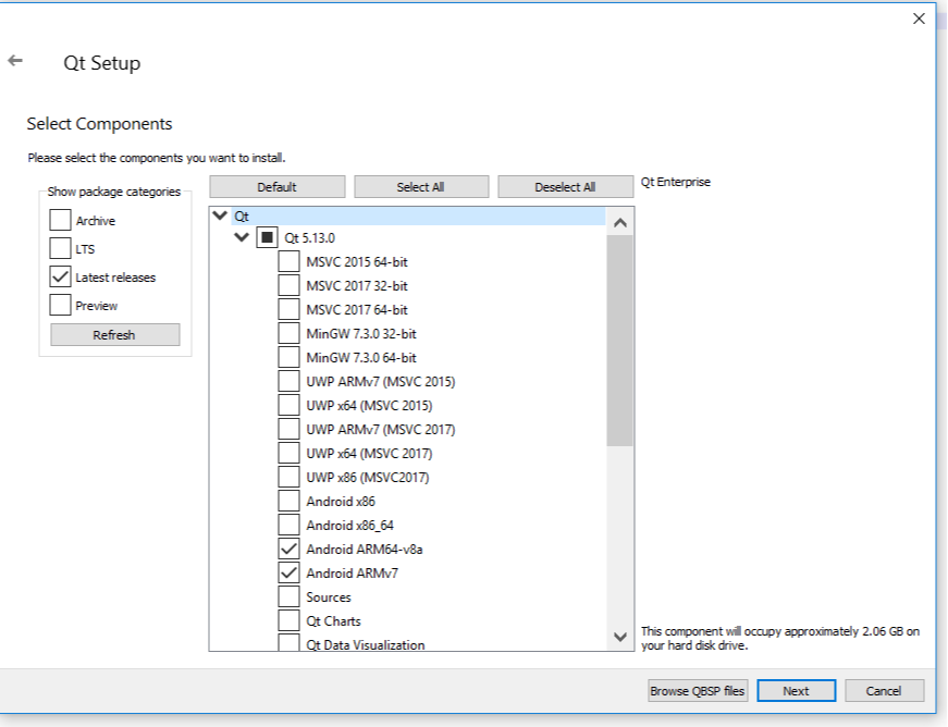 Мы будем использовать Qt 5.13.0. Если вы этого еще не сделали, начните с загрузки онлайн-установщика из своей учетной записи Qt (Qt Account).