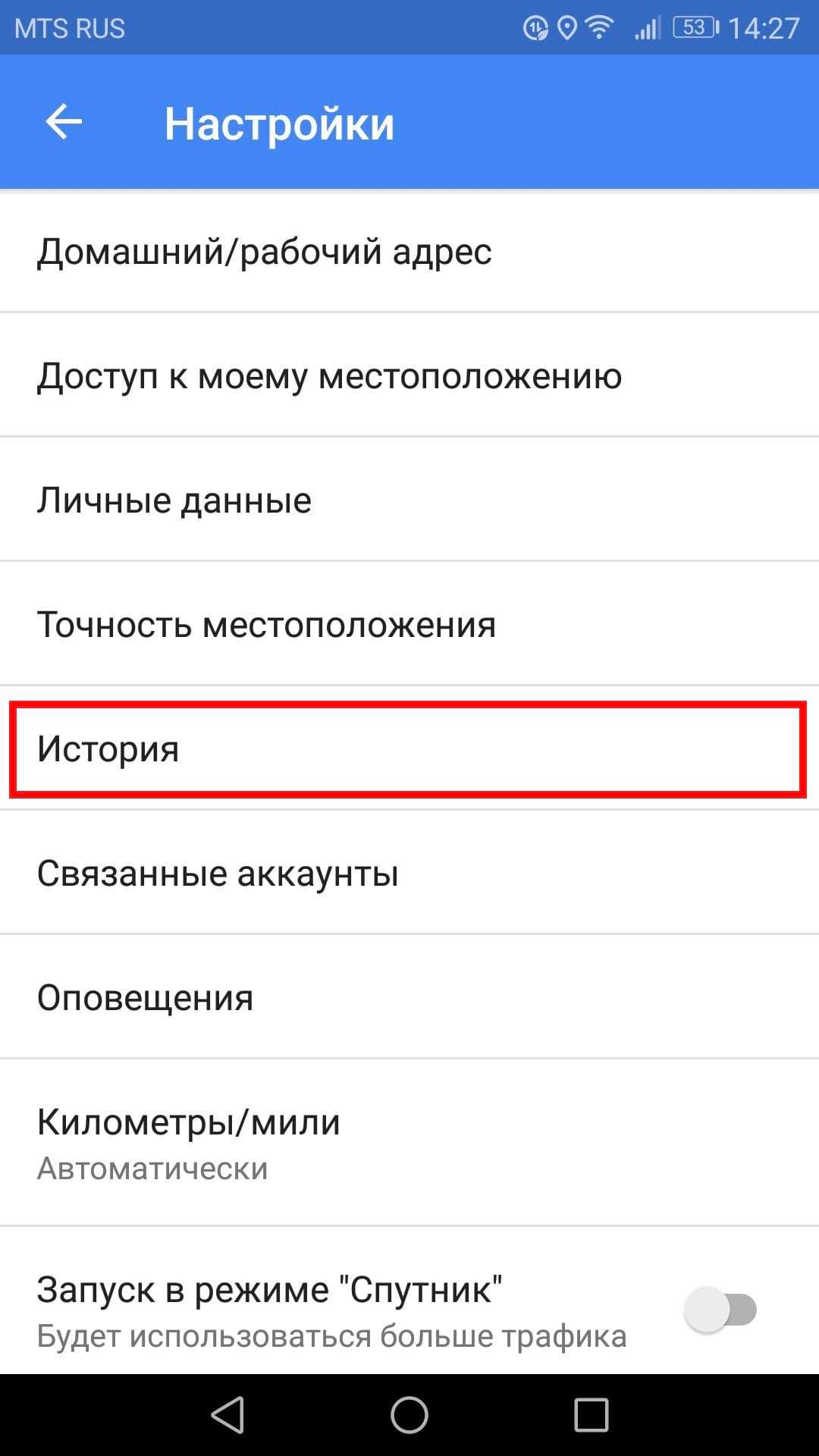 - Активируйте пункт «История местоположений».