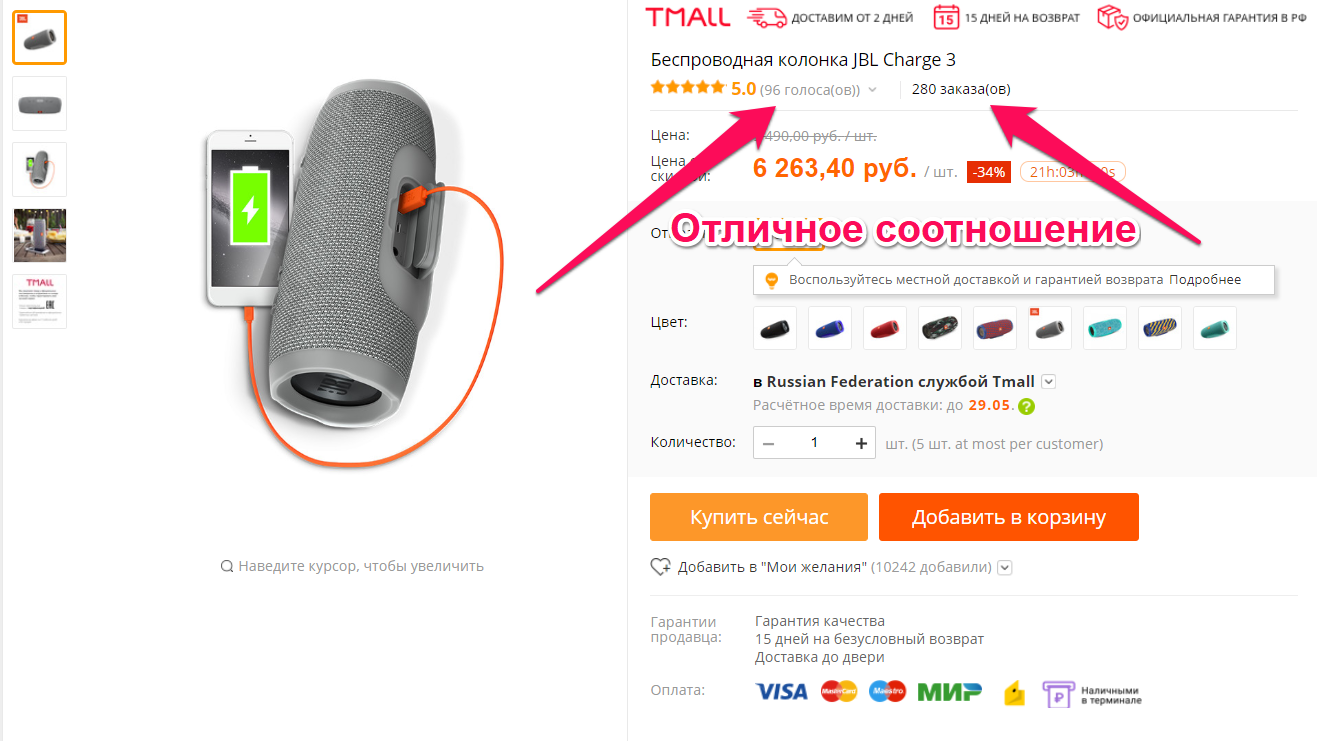 1. Рейтинг и количество заказов. Безусловно, первое, на что необходимо смотреть, это рейтинг товара. Очевидно, что чем выше рейтинг (максимальный — пять звезд), тем лучше товар. Впрочем, не все любители покупок на Алиэкспресс знают о том, что рейтинг обязательно нужно сопоставлять с количеством заказов и отзывами.