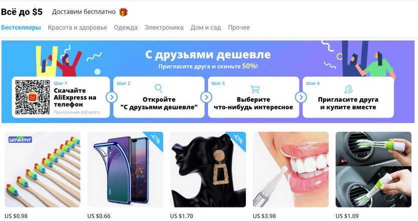 В разделе «Все до 5$» можно найти множество товаров для дома, одежду, украшения, электронику и аксессуары не дороже 400 рублей. С бесплатной доставкой AliExpress!