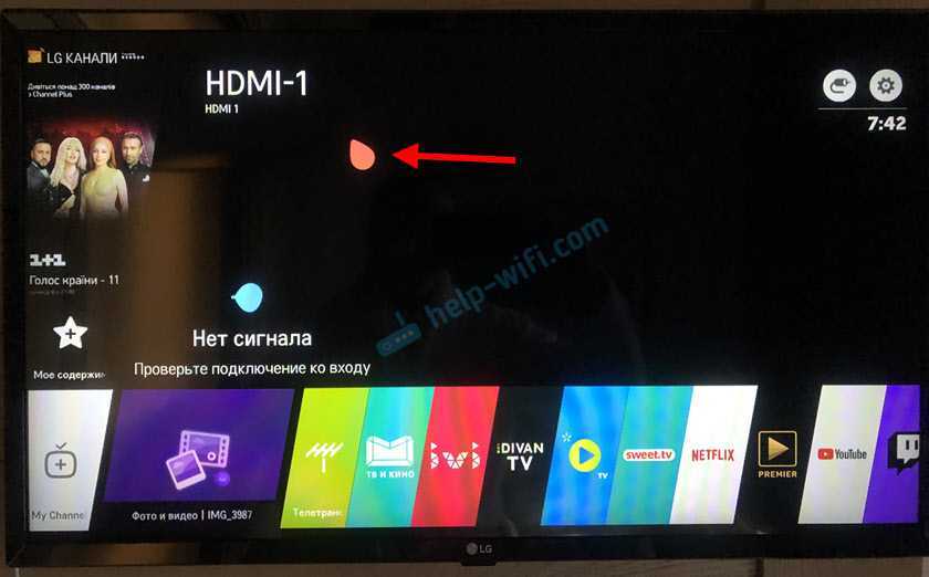 - В меню телевизора укажите в качестве источника сигнала порт HDMI. После этого экран телефона отобразится на TV.