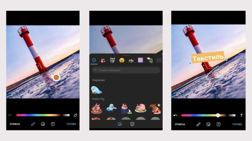 Вам доступны 3 функции: кадрирование, рисование и настройка изображения.
