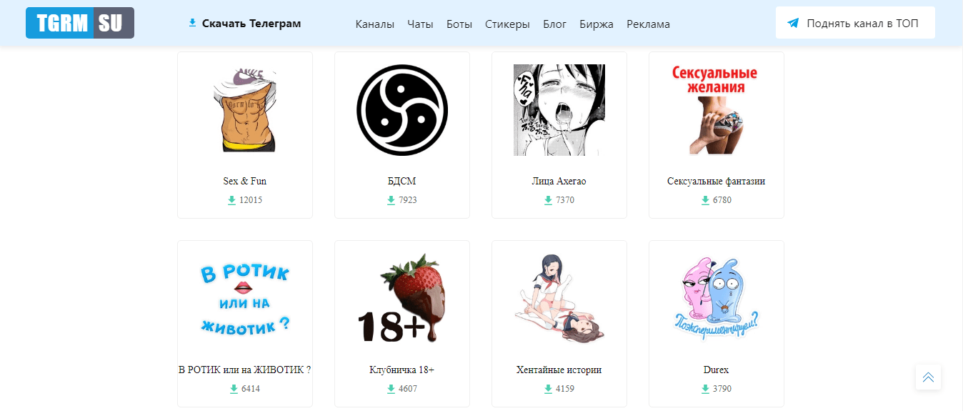- найти в интернете ресурс, предлагающий стикеры (например, tgrm.su/stickers/);