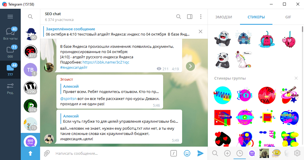 В Телеграм очень много различных стикеров. Самые популярные связаны со знаменитыми личностями и забавными животными.