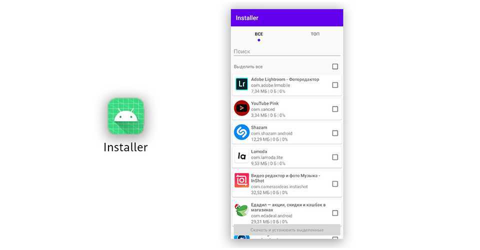 - Загрузка приложений с помощью инструмента Installer.