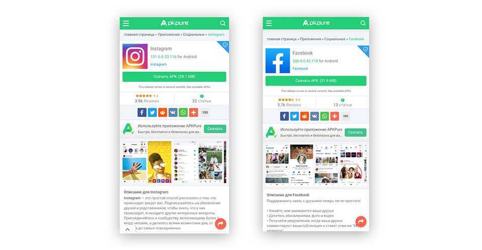 Например, если вам нужен мессенджер, вы можете загрузить WhatsApp, Facebook, Instagram на свой смартфон через APKPure.