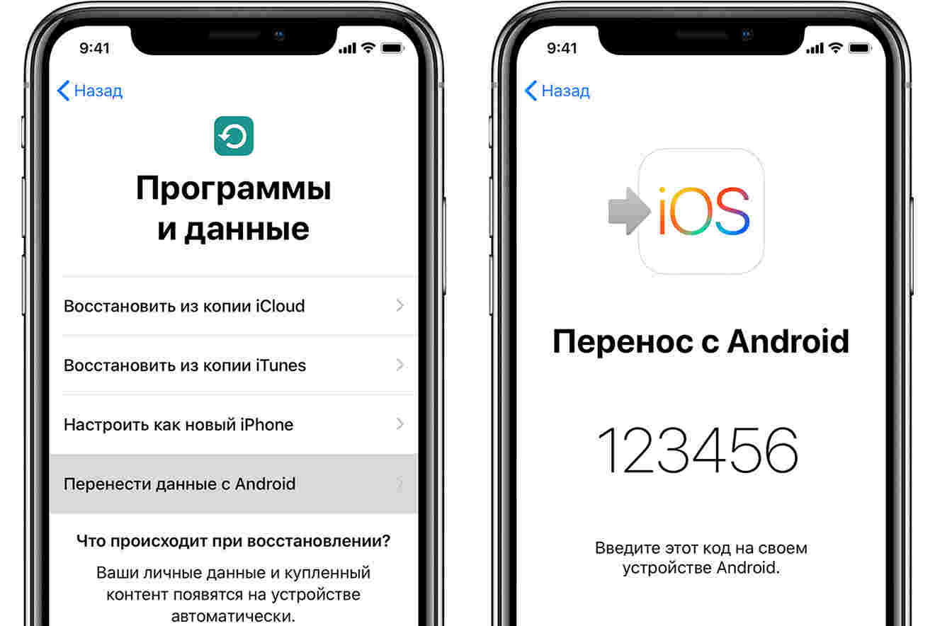 Перенос с Android на iPhone