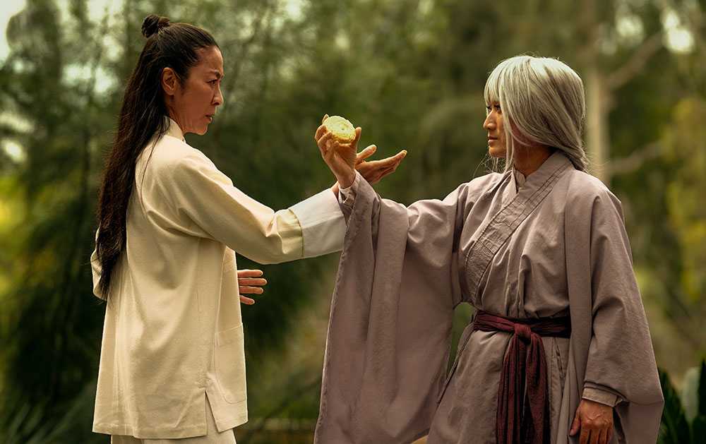 Фантастика в фильме «Все везде и сразу» по-хорошему лютая – благодаря ярко выраженному, смелому и дерзкому сюрреализму. Зрелище напоминает более безумную версию сериала «Легион», к которому также приложил руку Дэн Кван. Эвелин попадает в мир людей с сосисками вместо пальцев. Джобу Тупаки во время битвы скачет между реальностями, превращая соперников в танцоров и используя в бою фаллоимитаторы. У мизинчиков появляются железные мускулы. От фейерверка сумасшествия и кринжа не оторваться – один мультивселенский трюк поразительнее другого.