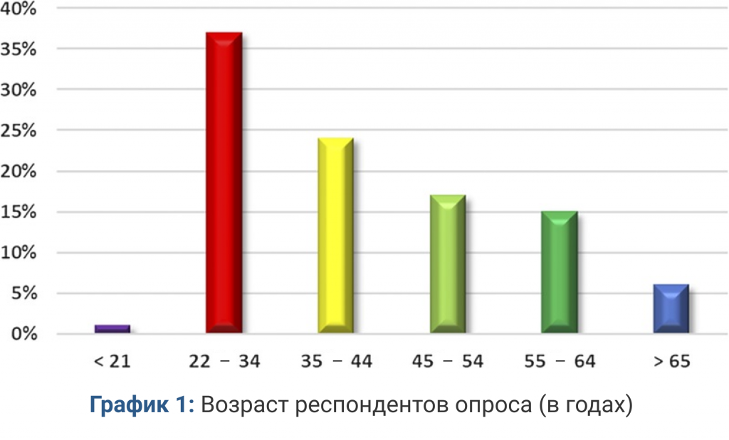 Мы получили ответы со всех континентов и изо всех стран, включая Австралию, Бразилию, Канаду, Китай, Францию, Германию, Японию, Индию, Италию, Россию, Сингапур, Сербию, Соединенное Королевство, США и др. Демографический срез опроса показал, что 60% респондентов были женщинами (40 — мужчинами) и принадлежали разным возрастам (график 1), причем 51% всех респондентов имели более 10 лет опыта в индустрии (график 2) и 25% — 20 лет. Более чем 36% опрошенных зарабатывали в год более $50 000, при этом 6% зарабатывали по меньшей мере $100 000 в год (график 3). Респондентов просили определить род деятельности (таблица 1), и 20% указали, что работают в качестве персональных тренеров либо на полную занятость, либо на частичную. В графике 4 отображено, что 33% респондентов указали, что ведут частную практику или владеют собственным бизнесом. На графике 5 отображен широкий спектр сертификатов, которыми обладали респонденты (38% сообщили, что не имели сертификатов вообще). 62% указали, что работают на полную ставку, а 29% — на неполную (менее 20 часов в неделю).