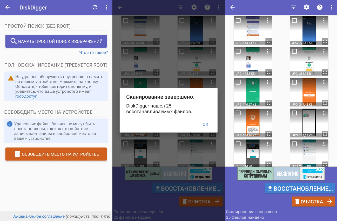 Все приложения для Android, которые восстанавливают файлы, нуждаются в Root-правах. Если ваше устройство не рутировано, для восстановления используйте компьютер.
