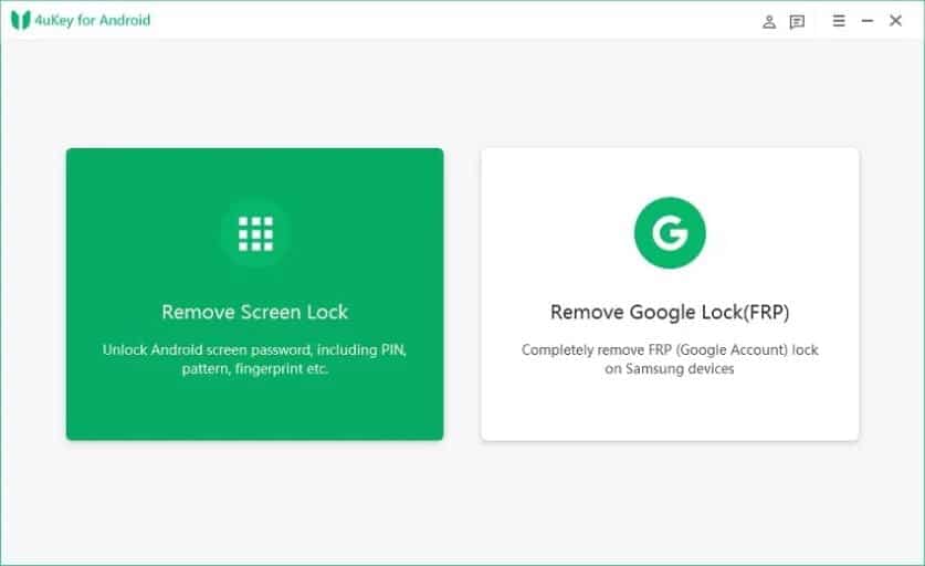 01. Загрузите и установите 4uKey для Android на свой компьютер. И подключите к нему свой телефон Android, а затем выберите опцию «Удалить блокировку экрана», чтобы начать.