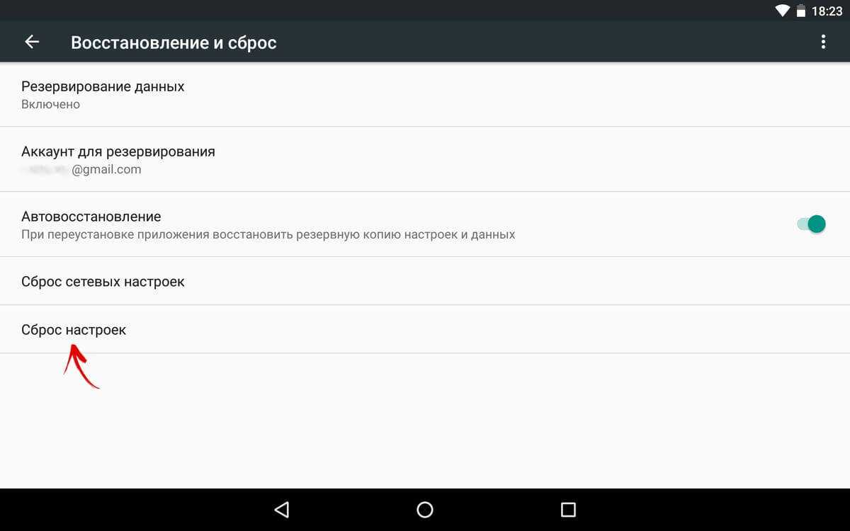 - «Настройки» — «Личные данные» — «Восстановление и сброс»;
