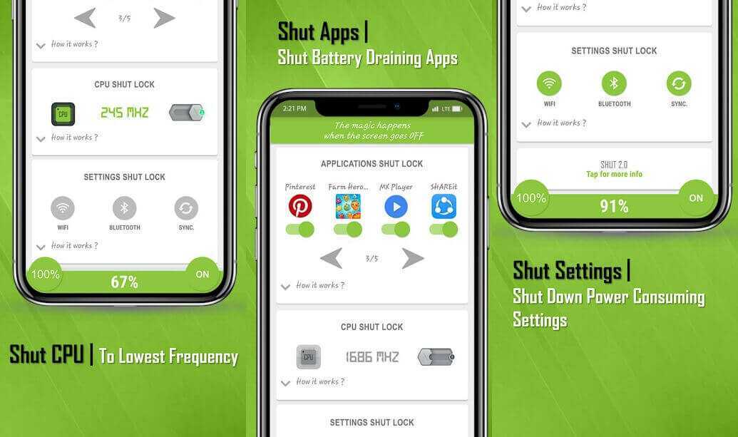 ShutApp позволит немедленно отключать приложения, использующие заряд батареи, одним нажатием. Инструмент прост в использовании и разделен на три части. Поэтому можно отключить отдельные приложения, ввести процессор в гибернацию в режиме ожидания или настроить функции вроде WiFi, Bluetooth и синхронизацию на автоматическое отключение, когда они не используются.