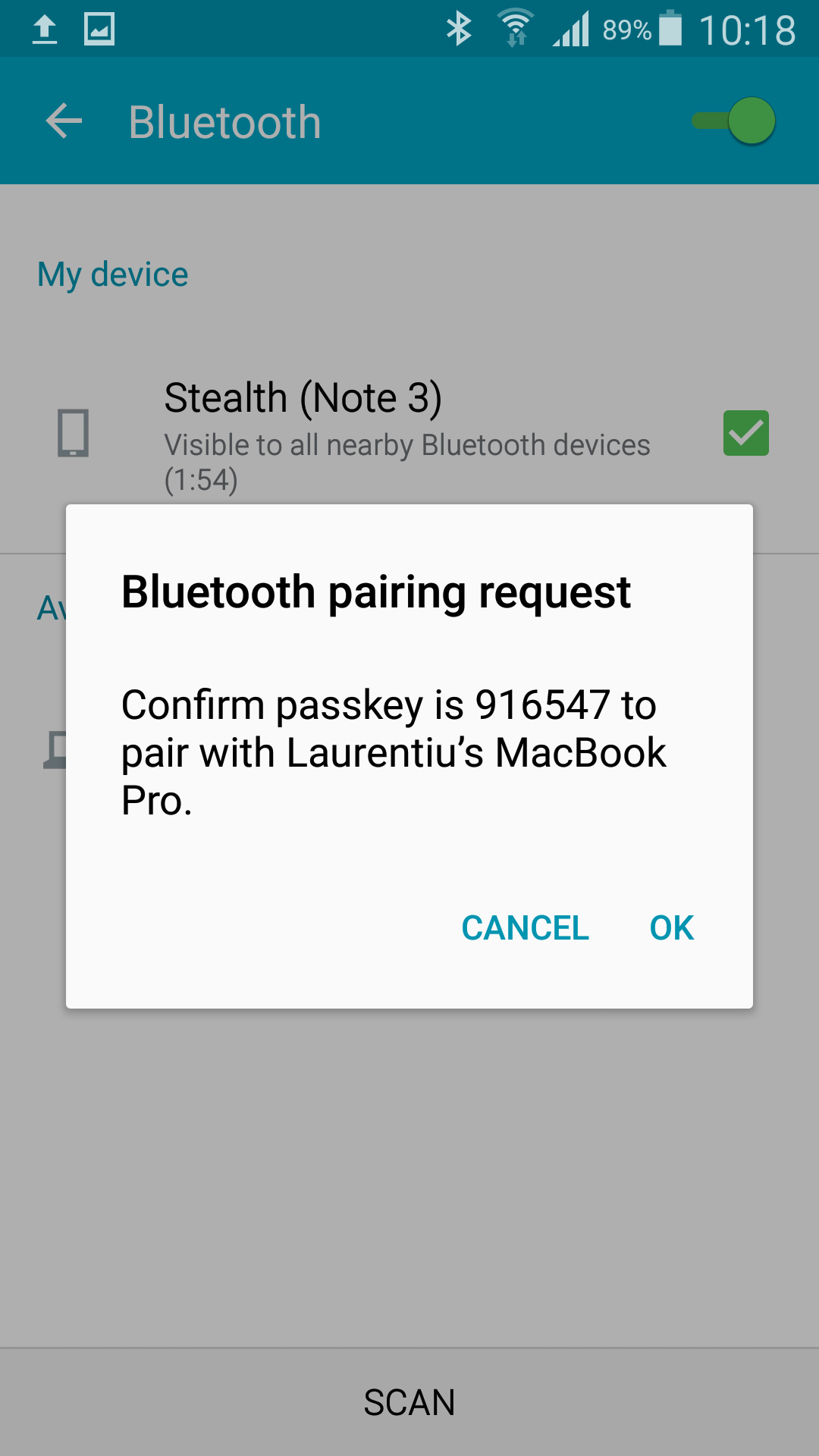 Нажмите «ОК» на Bluetooth Сопряжение ЗапросИ теперь мы можем начать передачу файлов между OS X и Android.