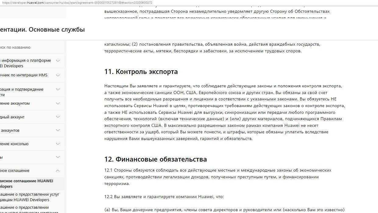 | В марте 2022 г. Huawei не вносила изменения в пункт 11 Соглашения с разработчиками. Данный пункт соблюдается разработчиками и партнерами Huawei по всему миру с декабря 2019 г. Политика Huawei заключается в соблюдении применимых законов и нормативных актов стран и регионов, в которых мы работаем, – гласит ответ Huawei. |