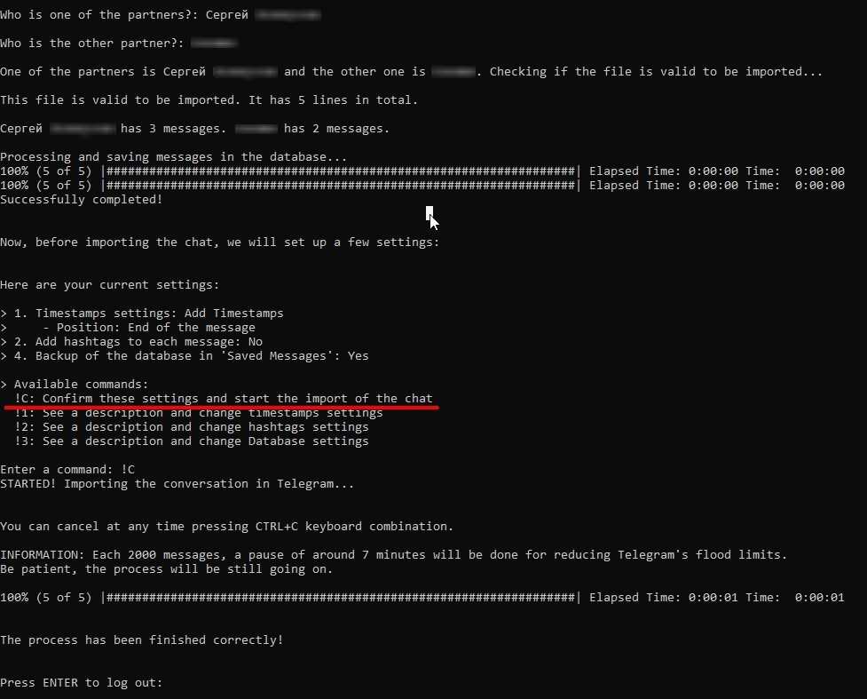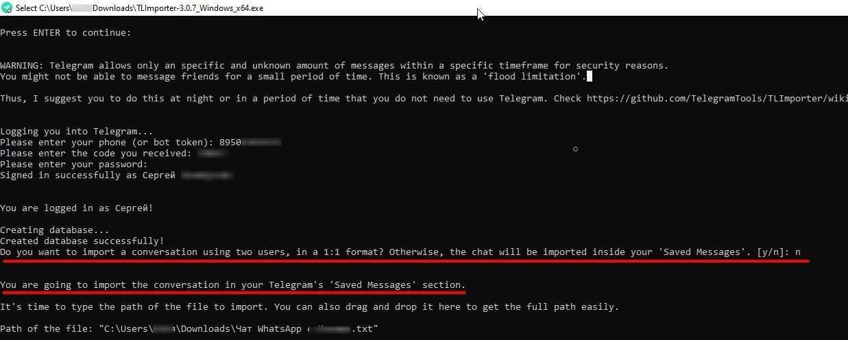 - для того, чтобы импортировать чат, нажмите на Enter;
