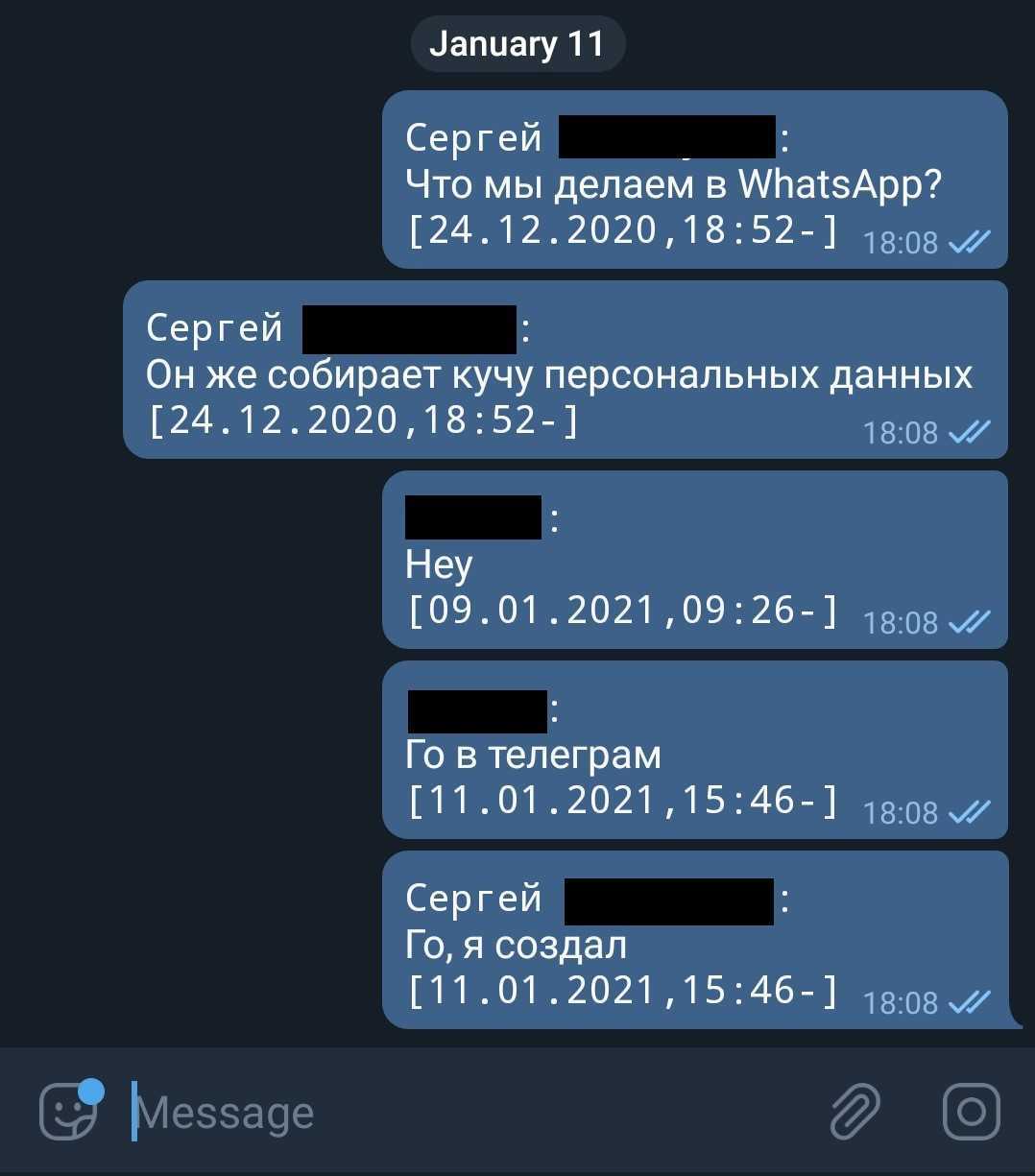 Может показаться, что это не очень удобно читать, так как нет разделения сообщений. По крайней мере, вы сделали экспорт переписки в Telegram. Ваш чат сохранён.