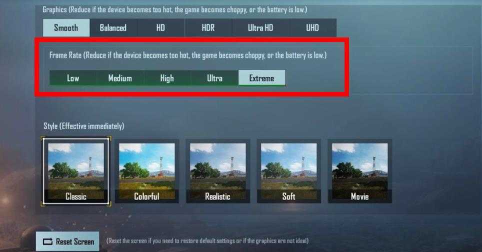 Перейдите в Настройки> FPS> Выбрать высокую или экстремальную графику.