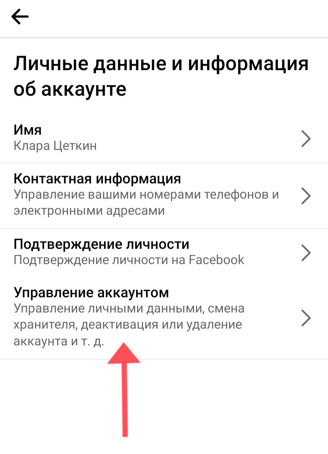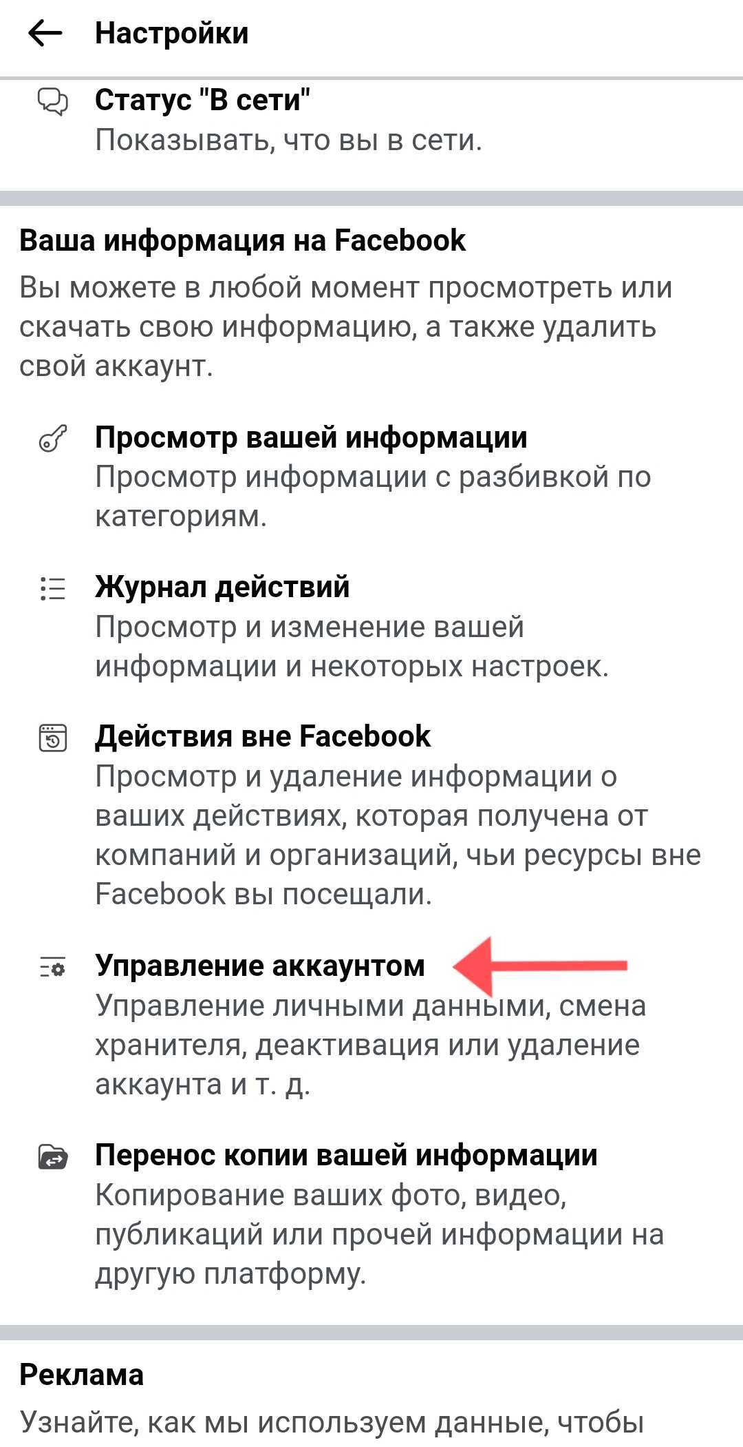 После чего откроется раздел управления аккаунтом. Необходимо нажать на эту строку.